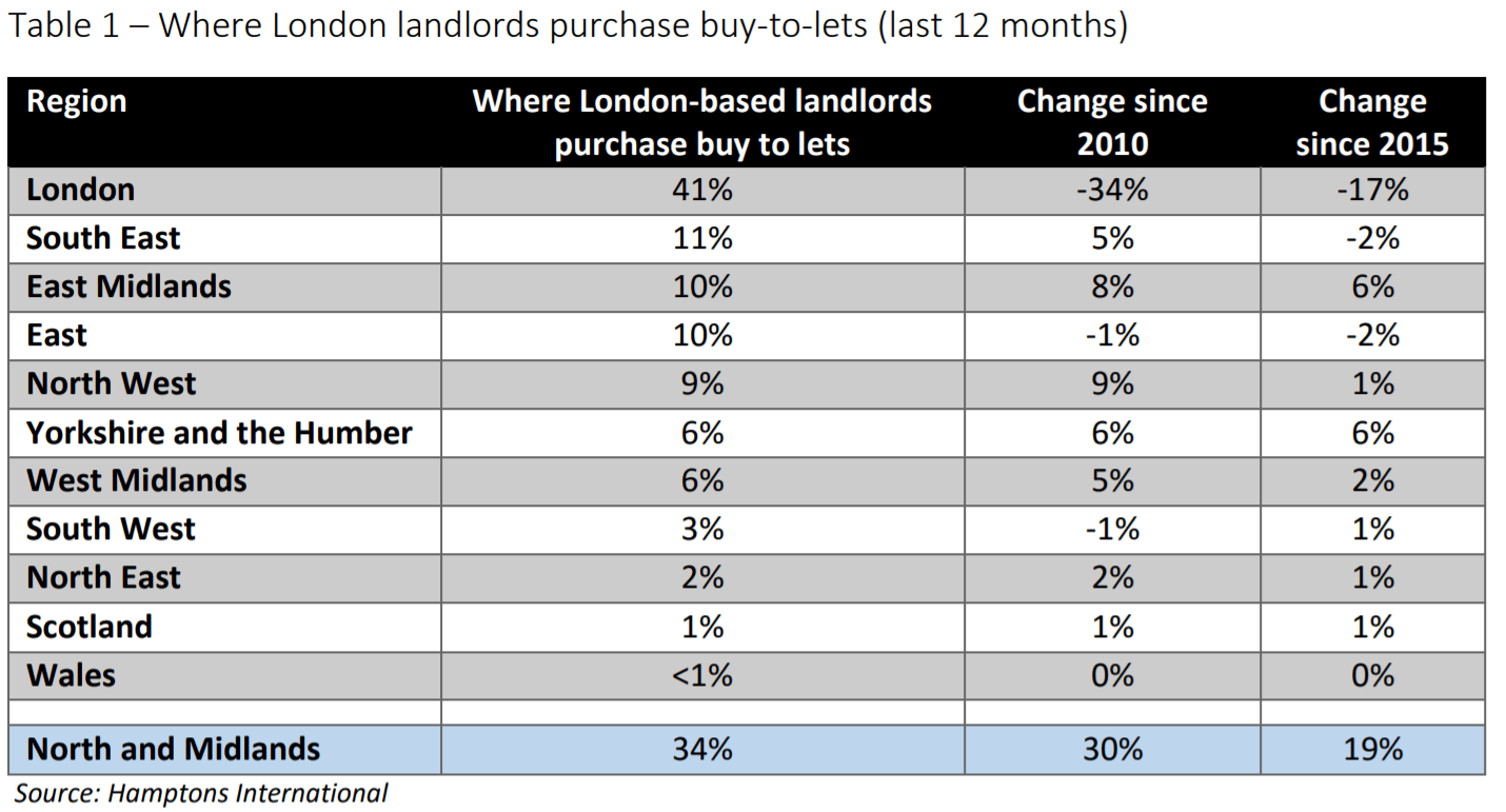 “Due to high house price growth and a clampdown on landlord taxation, more London-based landlords have chosen to invest further afield in search of higher yields and lower stamp duty bills,” Hamptons said.