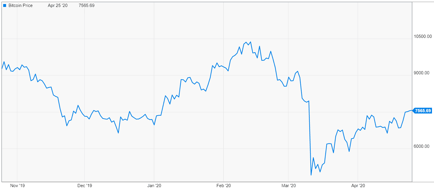 Here’s a chart of the Bitcoin price in USD.