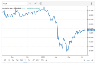 As you can see in the chart below, the price of Brent crude oil has rebounded significantly since April.